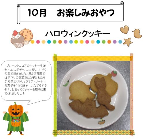 10月の保育園の誕生日会献立とお楽しみおやつを掲載しました!(^^♪