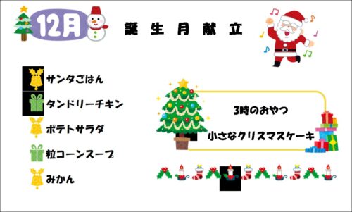 12月の保育園の誕生日会献立とお楽しみおやつを掲載しました!(^^♪